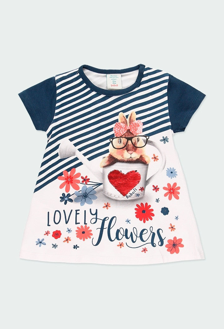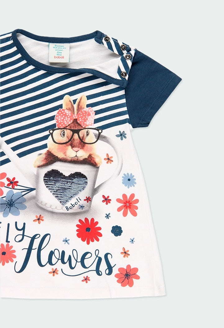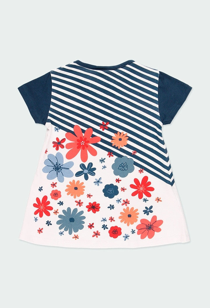 Printed dress for girls Boboli 204062-1100 color white/navy blue