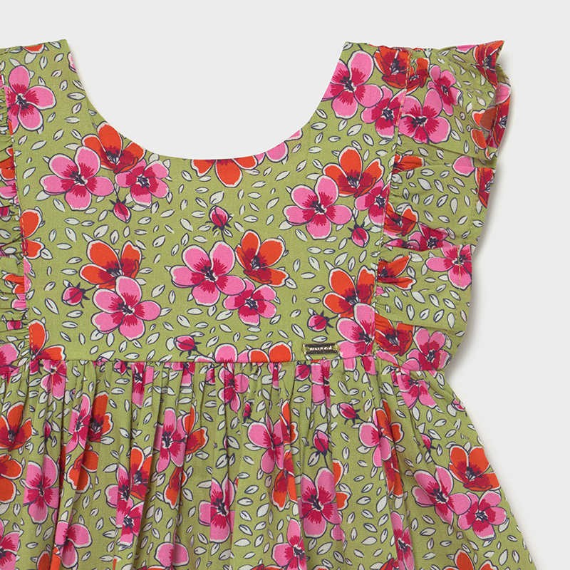 Dress with headband for children with floral print for girl Mayoral from the baby girl collection from the spring-summer season, product code 1987, color 30 Green. Children's clothing.