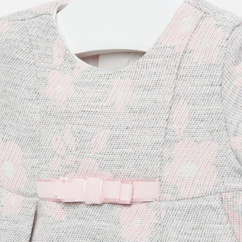 Jacquard floral dress for children with short sleeves for girls Mayoral from the newborn girl collection from the fall winter season, product code 2818, color 96 Silver. Clothing for newborns.