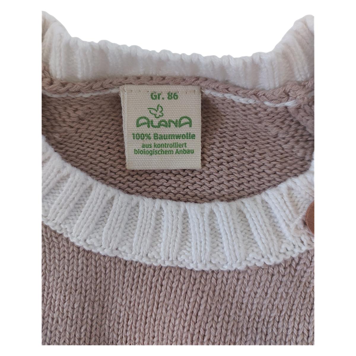 This beige sweater is a perfect choice for boys of all ages. Its soft-touch material makes it a pleasure to wear. A decorative button closure at the front not only looks attractive but also allows for easy dressing. The long sleeves provide comfort on cooler days, and the lower part of the sweater is adorned with a pretty pattern , making it an elegant addition to a child's wardrobe. The back of the sweater is classic, without additional embellishments, making it easy to combine with other items of clothing. This product is intended for children and has been used but is still in very good condition .