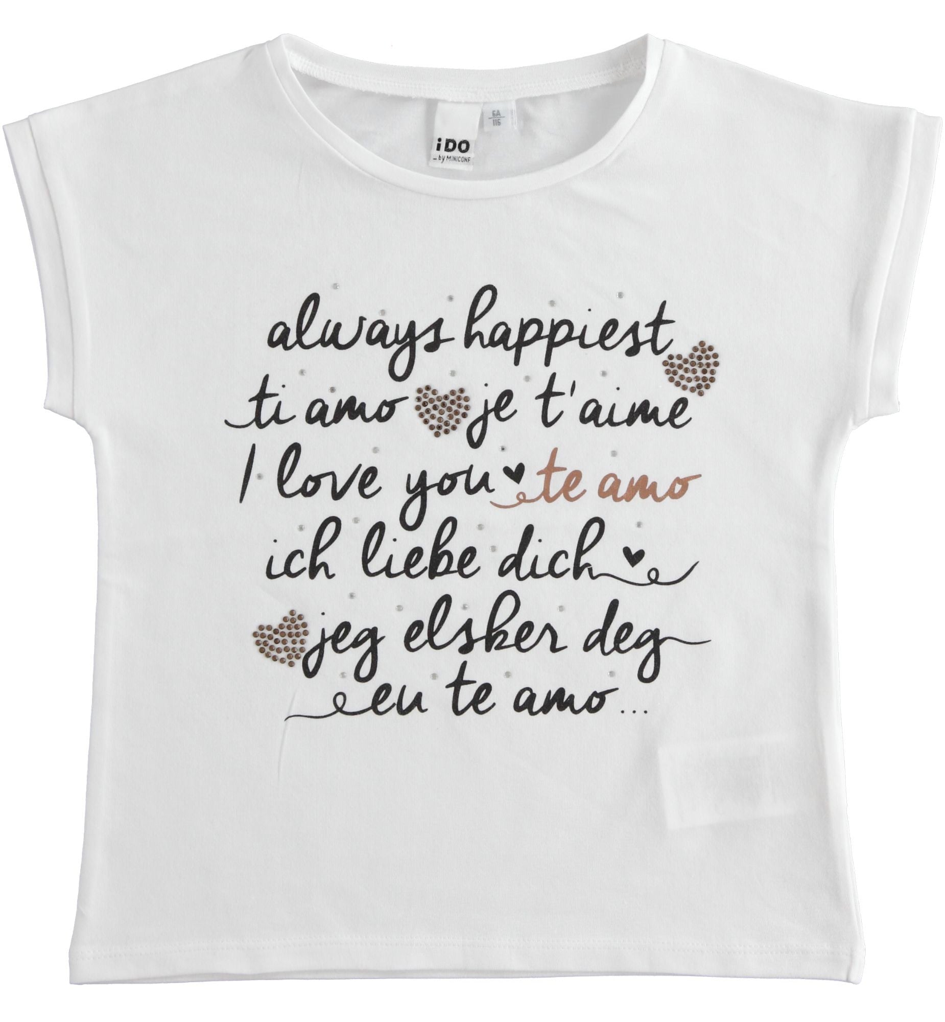 T-SHIRT for children short sleeve blouse for girls iDO from the spring summer collection product code J496 color 0113 white. Clothes for children.