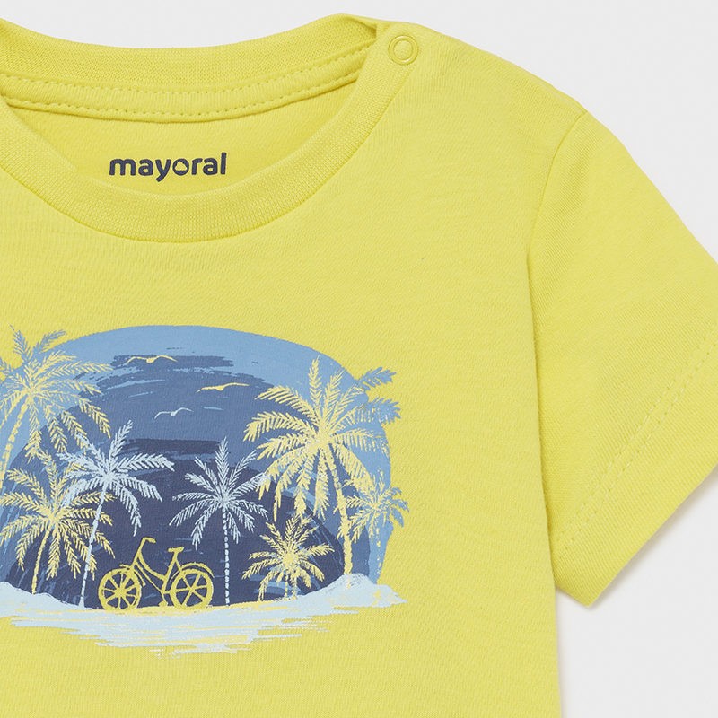 Set of two children's T-shirts with short sleeves and a boy's print Mayoral from the baby boy collection from the spring-summer season, product code 1015, color 88 Lime/navy blue. Children's clothing.